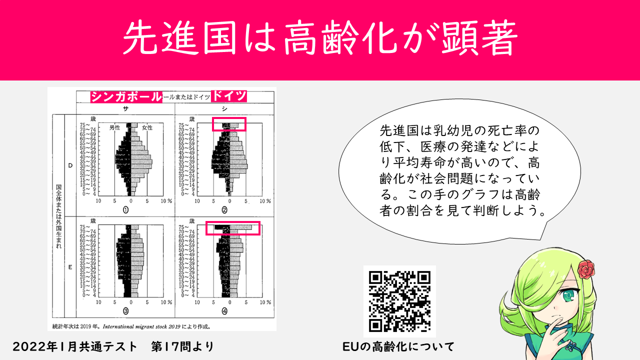 2022年12月28日 【共通テスト】「人口グラフにおける先進国の特徴って?」2022年1月共通テスト 第17問 人口グラフにおける先進国の特徴について解説しました。◇前回の記事はコチラです マンガでわかる高校地理: ケッペンちゃんと学ぶ高等学校地理 自然地理、農業、資源編高校地理お助け部Independently published2022-04-19マンガでわかる高等学校地理!ケッペンちゃんと学ぶ気候・農業編: ケッペンちゃんと学ぶ高等学校地理 ~気候・農業編~ (ケッペンちゃん文庫)高校地理お助け部2021-04-29 < 前の記事次の記事 > コメント コメントフォーム 名前 コメント 記事の評価 リセット リセット 顔 星 情報を記憶 コメントを投稿する