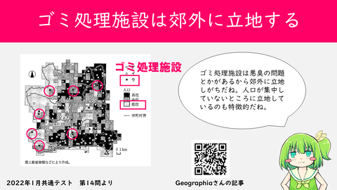 【共通テスト】「ごみ処理施設の特徴って?」2022年1月共通テスト 第14問