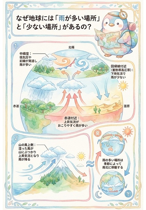 【図解】なぜ地球には雨の多い場所と少ない場所があるのか?