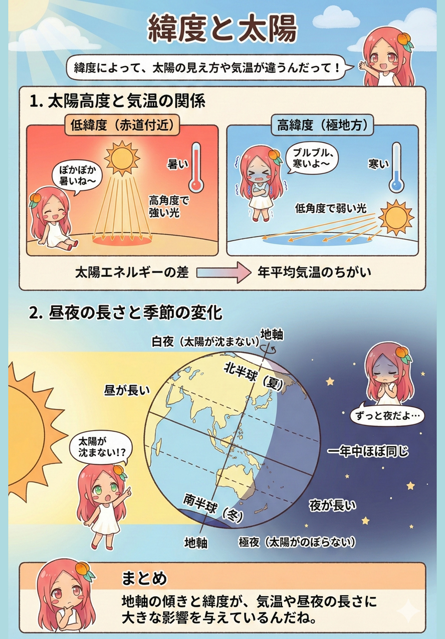 2025年12月16日 【図解】緯度と太陽 緯度と太陽についての教材を作りましたマンガでわかる高校地理: ケッペンちゃんと学ぶ高等学校地理 自然地理、農業、資源編高校地理お助け部Independently published2022-04-19公共JK: 公共ってなんで勉強するの? (地理おた文庫)高校地理お助け部地理おた部文庫2025-12-06 < 前の記事次の記事 > コメント コメントフォーム 名前 コメント 記事の評価 リセット リセット 顔 星 情報を記憶 コメントを投稿する