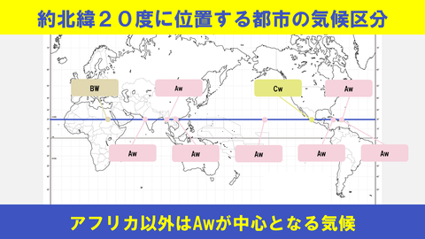 【図解】約北緯20度に位置する都市の気候区分