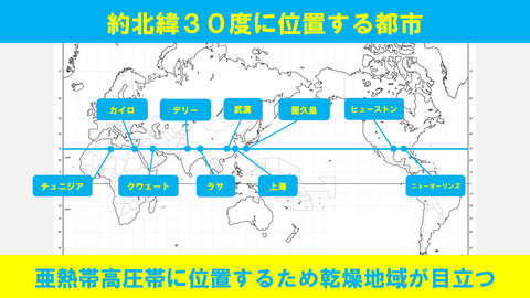 【図解】約北緯30度に位置する都市