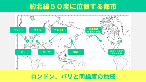 【図解】約北緯50度に位置する都市