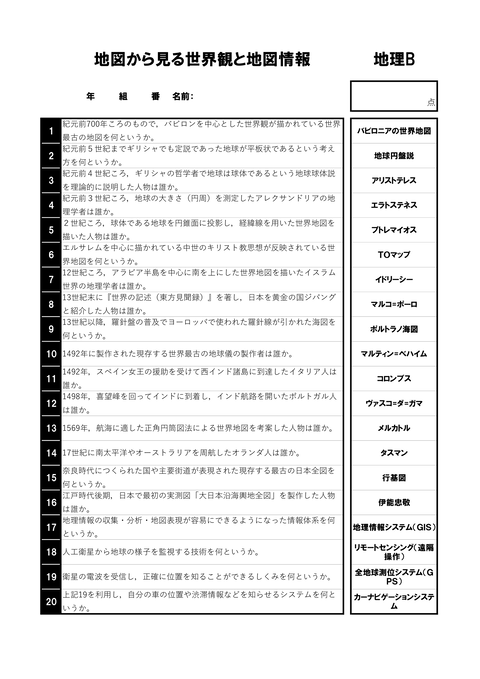新【小テスト】雨温図読み取り問題 ※地図入り